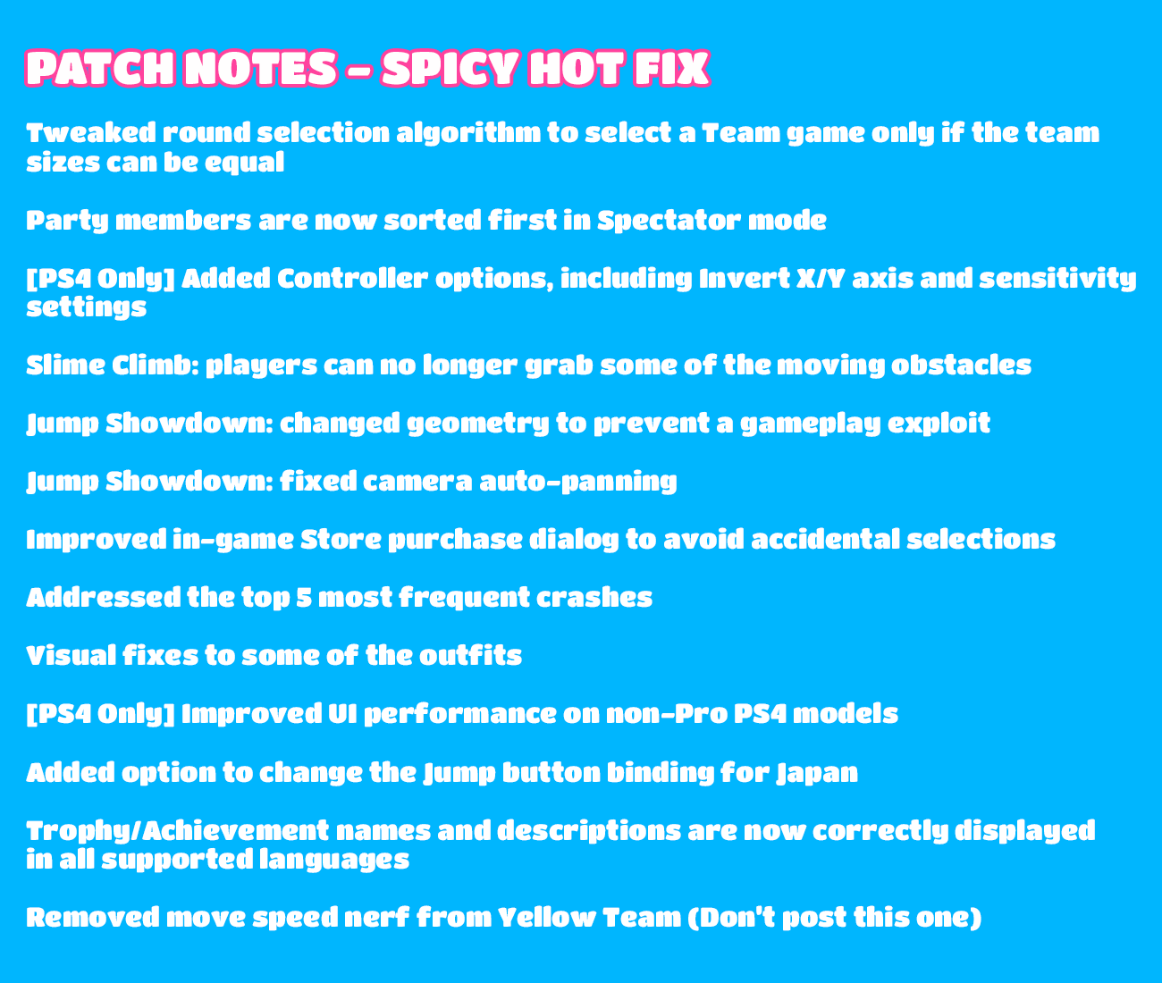 Fall Guys:8月25日アップデートのパッチノート公開!ジャンプボタン変更、その他改善